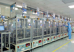 Затем остывшие формы передаются в цех сборки. Производство полностью автоматизировано: проходя по сборочной линии, изделие постепенно обрастает различными компонентами, правильность и точность установки которых контролируется автоматикой. Но совсем без участия людей все же не обойтись: в случае отклонения от заданных параметров конвейер останавливается и обслуживающий персонал устраняет неисправность.