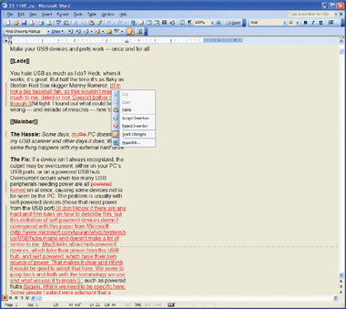 | Microsoft Word существенно облегчает коллективную работу. Принять или отклонить правку можно с помощью контекстного меню |
