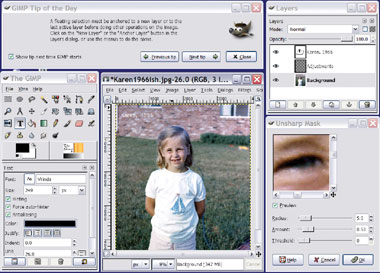 Многочисленные домашние пользователи будут довольны, работая с программой GIMP (GNU Image Manipulation Program). Это свободная программа с открытым исходным тектом, предназначенная для обработки графики. Она содержит большинство базовых инструментов, доступных в программах стоимостью от 100 долл., подобных Photoshop Elements. GIMP позволяет работать со слоями и путями, предоставляет широкий выбор фильтров, поддерживает используемые для прозрачности альфа-каналы. Кроме того, в ней возможна пошаговая отмена действий.