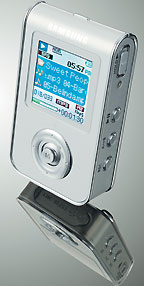 Маленький кирпичик с закругленным верхним краем смотрится симпатично. Небольшие размеры плеера (33х63х15 мм) обусловили применение встроенного литий-полимерного аккумулятора. Мне вообще-то больше нравятся те модели, которые можно «накормить» очередной батарейкой, но в данном случае в командировки придется брать с собой зарядное устройство (которое по размерам превосходит сам плеер). К счастью, подзарядка производится через разъем mini-USB, так что конструкторам не пришлось «сверлить» лишнюю дырку на корпусе. Кстати, он очень крепкий, «не играет» в руках. Отмечу цветовую дифференциацию устройств. Экземпляры модели YP-T7V с 256 Мбайт имеют исключительно синюю окраску (боковинки во всех моделях серебристые), 512-Мбайт YP-T7Х черен как ночь (участвовал в тестировании), а у 1-Гбайт YP-T7Z корпус цвета Apple?вского молока (см. фото). Так что в магазине емкость модели можно узнать с первого взгляда.