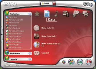Данные. Из двух представителей «старой гвардии» — Nero Burning ROM и Roxio Creator Classic — мы выбираем Nero как средство для «чистой записи» дисков. И делаем это, даже несмотря на более слабый интерфейс Nero. Программа компании Roxio, может быть, и выглядит более симпатично, и более проста в работе, но она не обладает той широтой возможностей (создание CD и DVD, поддержка образов дисков, встроенная функция копирования аудиодисков, кодирование аудиофайлов), которые предлагает пользователю Nero.