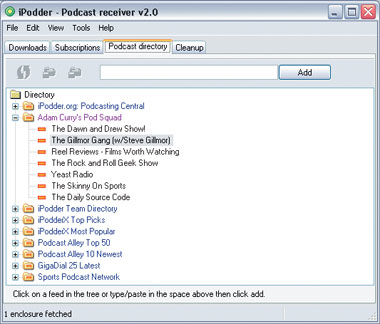 Лучшей программой для управления подкастами считается бесплатный iPodder, он проживает по адресу http://ipodder.sourceforge.net. Самая последняя версия на данный момент — 2.1, она поставляется с большой библиотекой настроенных подкастов (на английском языке).