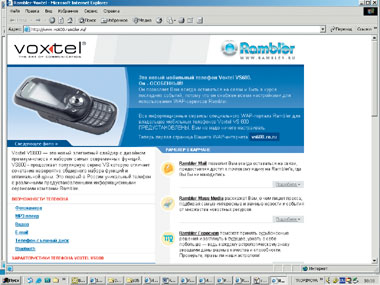 и помогут пользователям вне зависимости от места их нахождения быстро получить доступ к популярным интернет-сервисам. Новый телефон позволяет пользоваться почтой на «Рамблере», быть в курсе последних сообщений проекта Lenta.Ru, читать новости на Rambler Mass Media, не отставать от событий культурной жизни столицы, выбирать вид и место отдыха на «Rambler Афиша», получать сведения о котировке иностранных валют, узнавать прогноз погоды в большинстве российских и зарубежных городов, работать с электронными словарями, заглядывать в программу передач всех телеканалов, следить за рекомендациями астрологов на «Rambler Гороскопы» и прямо с мобильного телефона пересылать фотографии по электронной почте в виртуальные архивы на «Rambler Фото». Уникальность нового продукта заключается в том, что это первый мобильный телефон, снабженный всеми настройками для использования WAP-сервисов «Рамблера», а это дает возможность сразу выйти в Интернет, на WAP-страницу vs600.ro.ru, не тратя время на дополнительные установки.