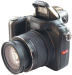 Кадрирование выполняется с помощью электронного видоискателя (EVF) или 2,5-дюймового ЖК-дисплея со 115 тыс. точек. Справа от дисплея располагается пятипозиционный джойстик, предназначенный для навигации по меню. Оно русскоязычное, в виде закладок, содержащих перечень функций. Запомнить, где что находится, достаточно просто, но для переключения в некоторые режимы приходится затратить какое-то время — на плутание по меню. Для настройки наиболее часто изменяемых параметров съемки (баланс белого, светочувствительность, режимы работы автофокуса и вспышки) предусмотрены соответствующие кнопки, расположенные справа от ЖК-дисплея и вызывающие необходимый пункт меню. Это ускоряет доступ к данным функциям, однако в целом кнопки и органы управления расположены довольно неудобно.