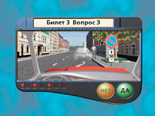 Самый волнующий и важный этап — «Экзамен». Каждая задача пронумерована по порядку и сопровождается табличкой с номером билета и вопроса. Диктор зачитывает текст, и вам остается только нажать «Да» или «Нет». Это, безусловно, просто, хотя не все одинаково хорошо воспринимают информацию на слух. Иногда, возможно, придется прослушать условие несколько раз. При правильном ответе вас ждут одобрительные аплодисменты, а при неправильном — хохот и улюлюканье. Если вы не знаете, как ответить, и не нажимаете ни одну из кнопок более минуты, вопрос заменяется другим, при этом его порядковый номер сохраняется (то есть отсутствие правильного ответа за ошибку не засчитывается). Качество картинок изумительное — яркие, контрастные, они запоминаются гораздо лучше, чем бледненькие, сероватенькие типографские оттиски.