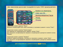 В пункте меню «Справка» рассказывается, как управлять диском с помощью кнопок пульта дистанционного управления. Аналогичные клавиши можно нажимать и мышью на меню компьютерного DVD-проигрывателя. Здесь все просто и интуитивно понятно.