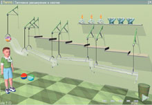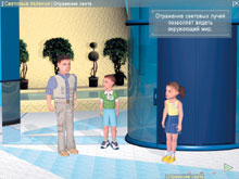 После несложной инсталляции программа запускается и прокручивает симпатичный мультфильм-заставку, которую в любой момент можно прервать и перейти к главному окну. Курс содержит разделы «Световые явления», «Тепло» и «Механика», включающие более детализированные темы. Каждая из них разбита на маленькие анимированные серии. Действующие герои — учитель, ученик и ученица — задают друг другу вопросы, проводят опыты и исследования на основе жизненных ситуаций, а потом отвечают на поставленные вопросы и делают выводы. В отдельных сериях ученику нужно самому отвечать на интерактивные вопросы. А кое-какие темы представляют собой игры, помогающие закрепить материал и лучше усвоить природу того или иного явления.