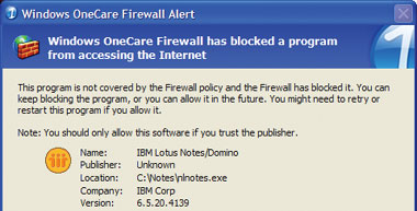 Брандмауэр OneCare, контролирующий как входящий, так и исходящий сетевой трафик, — усиленная версия Windows Firewall. После первого запуска OneCare спросил нас о неопознанной им сетевой активности, которую проявляли программы iTunes и Lotus Notes. В основном он не вставал у нас на пути до тех пор, пока не возникала необходимость обновления систем безопасности.