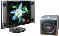 После подключения дисплея к компьютеру Windows XP сама определила устройство, а программа Philips Sound Agent 2, установленная с прилагаемого компакт-диска, открыла доступ ко всему многообразию настроек звукового контроллера, в числе которых имитация больших пространств, частотный баланс, автоматическая регулировка усиления, расширение стереобазы (для двухканального источника) или имитация многоканальной акустики с помощью обычной 2.1 (для многоканального источника), 10-полосный эквалайзер, микшер воспроизведения и записи. Да-да, поддерживается и запись: к этому монитору можно подключать микрофон не только для караоке, но и для передачи звука на компьютер.