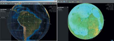 Помимо Земли с тем же навигатором от NASA можно взглянуть на Луну. Но погодная карта почему-то там недоступна. Кстати, представление Луны в World Wind более интересно, чем в аналогичном проекте Google.