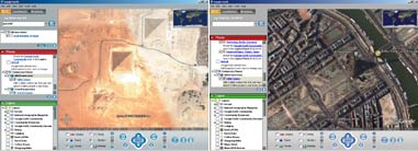 Герои доброй и мудрой сказки Астрид Линдгрен по достоинству оценили бы проект Google Earth. Кому, как не им, знать о завораживающем обаянии полета, когда внизу проносятся россыпи городских кварталов, извилистые ленты рек, пики горных хребтов и многое-многое другое, что можно увидеть на нашей планете. Ведь именно с этим встречаешься, знакомясь с проектом. Но прежде всего видишь Землю из космоса: голубое кольцо атмосферы, синий простор океанов, коричнево-зеленые континенты. Когда планета начинает приближаться, невольно возникает ощущение стремительного падения. Сквозь экран монитора распахивается город: здания, речная пристань, автомобили на улицах. Нужно это ощутить хотя бы затем, чтобы сказать: я видел! Мир раскрывается перед вами: Запретный город, лондонский Сити, храм Василия Блаженного, шпиль Адмиралтейства...