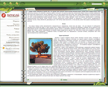 Информация представлена в справочнике в виде текстов, фотографий и рисунков. Однако столь скупое, казалось бы, использование возможностей мультимедиа нисколько не умаляет эстетических качеств издания. Энциклопедия воспринимается цельно и является на редкость функциональной. Удачно найденные стилевое решение, цветовая гамма, начертание шрифтов и набор необходимых сервисов создают комфортную среду для работы с материалами. Особое настроение придает рабочему процессу хорошо подобранный музыкальный фон. Автора продукта можно, пожалуй, упрекнуть лишь за небольшой объем представленных данных. Но это, скорее всего, будет существенно только для опытных приверженцев искусства бонсай, а для большинства пользователей издание способно стать успешным стартом в мир чарующих живых миниатюр.