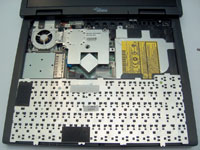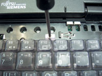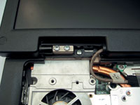 | Отворачиваем два винта, крепящих клавиатуру... | ...и откидываем ее на переднюю панель |