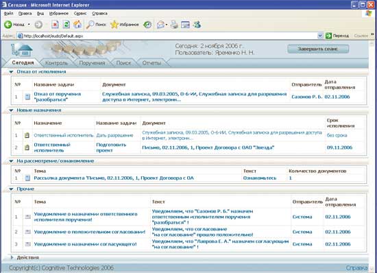 В «Журнале хода исполнения» отражаются то время, когда сообщение было создано, промежуточные и финальные отчеты по данному поручению, момент, когда оно было завершено, все сроки и результат: прервано оно или корректно закончено. Для каждого документа фиксируется, какие поручения по нему были заданы, что и кем в документе было изменено — одним словом, полная история работы с документом.