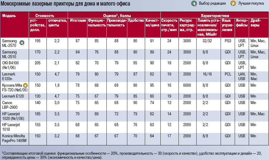 Цены на «бюджетные» лазерные принтеры становятся все ниже. Как видите, десятка лучших целиком состоит из моделей стоимостью от 130 до 200 долл. Причем немалую долю среди них занимают бренды, всегда считавшиеся поставщиками дорогой продукции.
