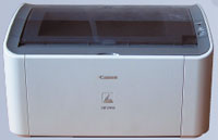 Данная модель уже довольно долго присутствует на рынке и, видимо, вполне успешно, поскольку прекращать поставки производитель пока не собирается. Для нас сей представитель компьютерной фауны интересен тем, что именно от него пошел род принтеров HP Laserjet 1018—1022. Механически эти устройства идентичны вплоть до картриджа №703, но стоит Canon ощутимо дешевле: на 10% сам аппарат и на 15% каждый отпечаток. Более того, экономичный режим печати у Canon бережнее расходует тонер: во-первых, повышает яркость всех без исключения оттенков (в то время как HP оставляет чистый черный достаточно густым) и, во-вторых, снижает линиатуру растра.