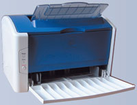 Компания продолжает эксперименты с нетрадиционной окраской корпуса: PagePro 1400W имеет такую же синюю отделку, как и цветной Magicolor 2400W («Мир ПК», №7/05), — выглядит это забавно. Обращает на себя внимание и входной лоток с большой откидной крышкой, не требующей наличия продольного ограничителя для бумаги. Размер и наклон лотка не позволяют ей никуда вывалиться. Оборотная сторона этой медали в том, что массивная крышка быстро разбалтывается и перестает плотно прилегать к корпусу при закрытии. Несколько «перемудренной» показалась нам процедура приведения в боевую готовность выходного лотка, особенно в сравнении с другими принтерами.