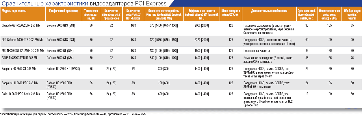 Что же касается актуальных игр для программных интерфейсов DirectX 9 и OpenGL, то здесь сгодятся платы GeForce 8600 GT, Radeon HD 2600 XT и Radeon HD 2600 PRO. Их производительности обычно хватает даже для экранного разрешения 1280×1024, а уж в режиме 1024×768 для 15-дюймовых TFT-мониторов можно даже прикоснуться к так называемому «комфортному fps».
