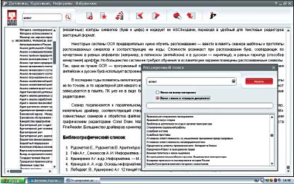 Продукт включает множество работ разной тематики и назначения. Наибольшее количество материалов представлено по темам «Менеджмент», «Экономика» и «Юрис-пруденция». Программа не требует инсталляции и запускается с диска. Из доступных опций можно выделить систему поиска, позволяющую найти требуемое слово или словосочетание в документе и сформировать по нему выборку из текстов. Из прочих удобств – сортировка, раздел «Избранное», навигация по темам, возможность распечатать документ и сохранить его в формате Microsoft Word. Увы, встречаются и недоработки. Так, полная тема отражается в подсказке. Но поскольку ее длина ограничена 80 символами, то название темы также не всегда видно целиком. Видимо, специально для этих случаев следовало бы дублировать название документа внизу окна в специальной строке.