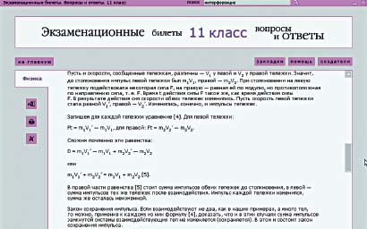 Данный продукт представляет собой сборник билетов с ответами по четырем предметам из курса 11-го класса: «Русский язык», «Литература», «Биология» и «Физика». Программа запускается с диска без инсталляции, есть удобный поиск, формирующий по запросу окно со ссылками на вопросы и соответствующие ответы, система закладок, преду-смотрена печать ответов или их редактирование и сохранение в формате Microsoft Word. Из минусов – неудобная навигация по разделам программы и практически полное отсутствие наглядности при ответах — нет графиков, картинок и проч.