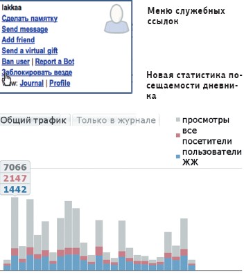 В новой версии ЖЖ появилась маленькая приятная деталь — указание количества всех комментариев к посту внутри самого поста. Парадокс, но раньше, чтобы увидеть общее количество комментариев к записи, нужно было вернуться к общей ленте. Также добавлена возможность удалить сразу все комментарии одного автора из отдельно взятого поста, что бывает полезно, например, если вас достал некий конфликтный пользователь или спамер.