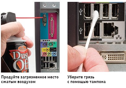 Со временем разъемы электронного оборудования покрываются пылью и грязью. Если вы испытываете затруднения при подключении к компьютеру устройств с интерфейсом USB или какого-либо другого оборудования, в первую очередь имеет смысл почистить используемые разъемы.