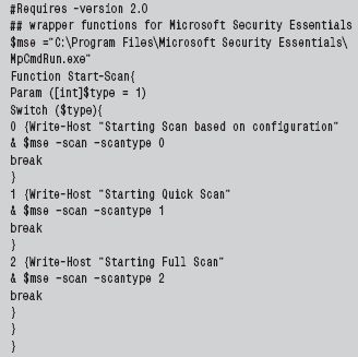 Этот скрипт позволит, используя PowerShell, запустить MpCmdRun на сканирование в зависимости от параметра: 0, 1 или 2. Причем не надо постоянно вводить в командной строке полный путь к файлу и помнить полный синтаксис команды. Знатоки PowerShell могут модифицировать скрипт, добавив дополнительные действия, например для запуска MpCmdRun на удаленных компьютерах.