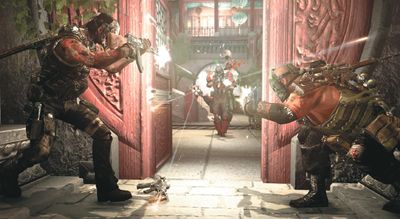 «Фриланс» главных героев практически полностью избавил игру от трехгрошового армейского пафоса, набившего оскомину в обеих частях Gears of War. Игра AoT по духу куда ближе к аркадной классике, легковеснее, «оторваннее» и веселее. После нескольких часов, проведенных в обществе Салема и Риоса, бравурные оркестровки Стива Джеблонски и стереотипные виртуальные солдафоны из «Гирь» воспринимаются как смесь из забродившего кефира и «рядового Райана». Не сочтите мое отношение к GoW чересчур предвзятым — как динамичный «шутер» игра, несомненно, весьма хороша. Просто набор штампов и клише, лезущий из почти каждой игры, где раздается хотя бы один выстрел, навяз в зубах еще в конце прошлого века.
