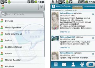 Для установки «контактного» клиента следует загрузить APK-файл с сайта разработчика: приложение не имеет официального статуса и пока еще отсутствует в Android Market. У продукта нет конкурентов, однако оно заслуживает пятерки, несмотря на бета-статус. Значки программного окна не нуждаются в пояснениях: те, кто пользуется сервисом «ВКонтакте», без труда поймут, что нужно нажать для просмотра сообщений на своей «стене», где расположена кнопка вызова списка друзей, или каким образом перейти к разделу сообщений.