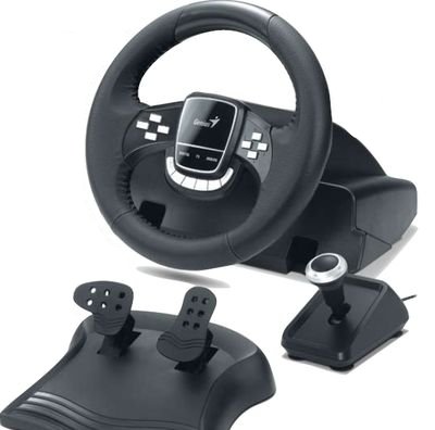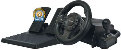 Как и манипулятор компании Defender, это устройство можно отнести к бюджетным. При невысокой цене оно обеспечивает вполне приемлемые ощущения. Комплект поставки стандартный: рулевая колонка, педальный блок и коробка передач, совмещенная с ручным тормозом. Рулевое колесо сделано небольшим, под стать спортивным. Углы поворота вполне приемлемые — 270°.