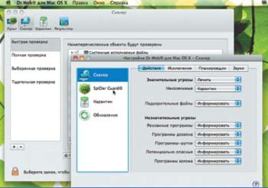Интерфейс данной программы существенно отличается от аналога для ОС Windows. Разработчики стремились сделать его более «макоподобным», но он выглядит сырым, а также не очень удобен в работе. Например, совершенно неясно, зачем сделана вкладка «Пульт», дублирующая кнопки в верхней части окна. Единственное ее полезное назначение — показывать информацию о последнем обновлении антивирусных баз. Пожалуй, внешний вид ПО разработчикам стоит полностью пересмотреть, особенно в Mac OS, где дизайн и удобство интерфейса весьма ценятся. Итак, по одежке встретили, а сейчас выясним, что же программа умеет.