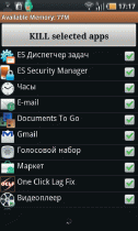 Операционная система Android не умеет закрывать приложения по команде пользователя — они остаются висеть в фоновом режиме, отъедая дефицитную оперативную память. В принципе, умная ОС сама должна определять, когда этой памяти становится совсем мало, и прекращать действие ненужных программ. Но стоит ли проверять, всегда ли это делается корректно? Приложение Advanced Task Killer поможет вручную прореживать список активных программ, освобождая оперативную память. Достаточно просто пометить галочками неактуальные и закрыть их одним нажатием кнопки. Удобно, что запускается данное приложение щелчком из статусной строки.