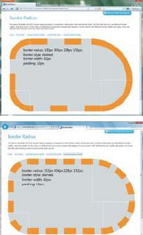 Однако, несмотря на все усилия, не всегда разработчики браузеров интерпретируют спецификации одинаково. Иногда заявленная поддержка нового стандарта работает не совсем корректно. В качестве примера возьмем приложение, демонстрирующее возможности CSS3?модуля Backgrounds & Borders, а точнее свойства border-radius. Очевидно, что существуют отличия в отображении примера в IE9 и Firefox 4.