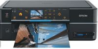 Как следует из названия, компания Epson в очередной раз выпустила многофункциональное устройство, рассчитанное на работу с фотографиями. Аппарат оснащен большим качественным дисплеем, на котором удобно рассматривать изображения благодаря хорошей цветопередаче. Навигацию по меню обеспечивают сенсорные органы управления, работающие вполне приемлемо, а теплая оранжевая подсветка радует глаз. Передняя панель, на которой расположен дисплей, может изменять угол наклона, что удобно в тех случаях, когда устройство стоит на низко расположенной полке. Считыватель карт памяти позволяет работать со всеми современными форматами. Как водится, присутствует и лоток печати на CD/DVD-носителях.