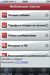 Данное приложение можно загрузить с сайта МТС (для смартфонов на базе Android) или через App Store (для iPhone). После первого запуска программа предложит пользователю пройти процедуру авторизации, а затем предоставит доступ к главному меню «Мобильного портала».