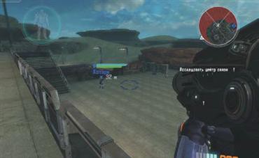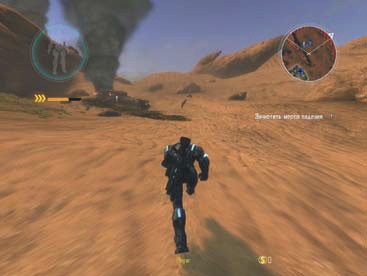 Следовательно, во время схваток с врагами нужно постоянно следить за состоянием скафандра. Во-первых, ни в коем случае нельзя допускать, чтобы уровень защитного поля, указанный сферой на диаграмме сверху и слева, падал до нуля. Во-вторых, в случае появления на фигуре человека в той же диаграмме красных участков пораженной брони надо срочно искать ремонтника-механика или подбегать к своему модулю снаряжения. В-третьих, необходимо постоянно следить за количеством боеприпасов, оставшихся в активном оружии, — в правом нижнем углу. Если их вообще осталось мало, следует срочно пополнить запас к модулю снаряжения, а если недостаточно в оружии — произвести перезарядку (по умолчанию клавиша R).
