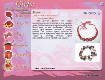 Помещенные на обложке интригующие заголовки:«Меня не понимают! Как воспитать родителей», «Первое свидание: простые правила», «Гороскопы, гадания и тесты» -- сразу дают понять, что это не энциклопедия, а скорее электронная версия женского журнала.
