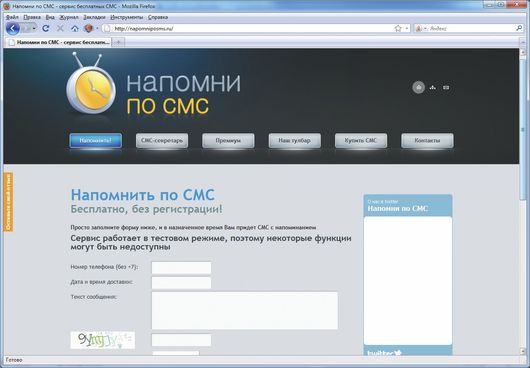 Сервис «Напомни по СМС» -- спасение для тех, чьи планы на день не умещаются ни в голове, ни в ежедневнике, ни в календаре мобильного телефона. Работать с ним очень просто – достаточно без всякой регистрации, указав лишь номер мобильного, определить для себя важные дела и точное время, в которое следует напомнить о каждом из них. В нужный момент на мобильный телефон придет SMS-сообщение с текстом, указанным на сайте napomniposms.ru.