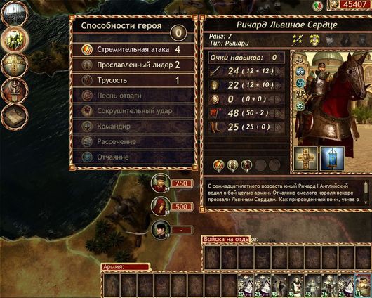 • Начиная кампанию за крестоносцев, первым делом нужно купить Ричарду Львиное Сердце лошадей, т.е. перевести отряд в категорию рыцарской конницы.