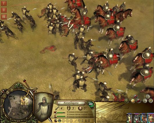 Следовательно, пользователь, набравший в свою армию несколько отрядов стрелков, копейщиков и кавалеристов, без труда справится с большинством заданий. В перерывах же между боями нужно будет за дукаты пополнять численность отрядов и разумно улучшать их характеристики.