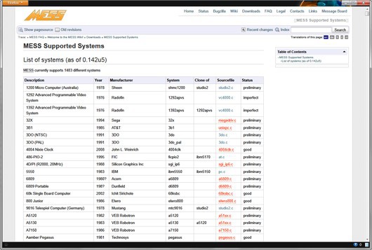 Кстати, не забыты и эмуляторы устаревших компьютеров и игровых приставок. Просто невозможно пройти мимо проекта MESS (Multi Emulator Super System), в настоящее время поддерживающего эмуляцию нескольких сотен устаревших систем.