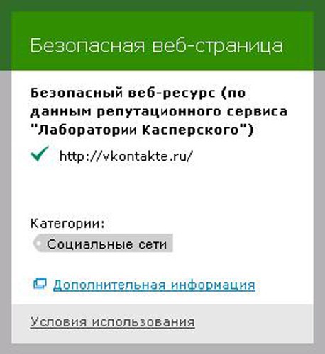 Здесь стоит отметить, что похожая технология уже применяется в продуктах Symantec (Norton Safe Web). Кроме того, у Norton статус любого посещаемого сайта отображается на специальной панели браузера, а не только в результатах поисковых систем, как в KIS 2012.
