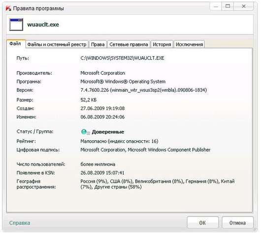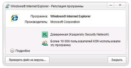 Компонент Kaspersky File Advisor позволяет одним щелчком мыши проверить любой исполняемый файл по базе Kaspersky Security Network. В результате появляется информация о количестве пользователей, уже запускавших данное приложение, а также рейтинг его опасности.