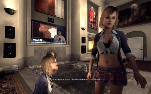 Наконец, когда монстр все-таки повержен, становится ясно, что это вовсе еще даже не игра, а просто интерактивная заставка. Выясняется, что сам Ньюкем, разумеется, руками пользователя как бы играл на приставке в свои собственные приключения. На самом же деле все происходит в роскошно обставленном пентхаусе одного из небоскребов, где Дюк виртуально развлекается. Впрочем, брутальный блондин остается верен себе, и сразу становится очевидно, что он вовсе не один весело проводит время в своих роскошных апартаментах. Компанию ему составляют две очаровательные светленькие близняшки Холсом в костюмчиках шаловливых старшеклассниц.