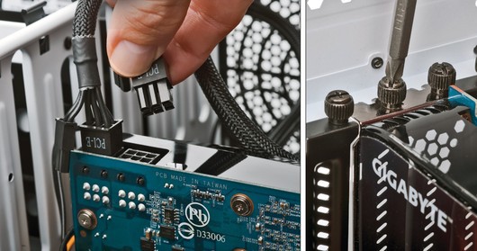9. Если внутри корпуса тесно, имеет смысл предварительно подключить к новой видеоплате кабель питания PCI Express.
