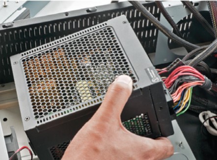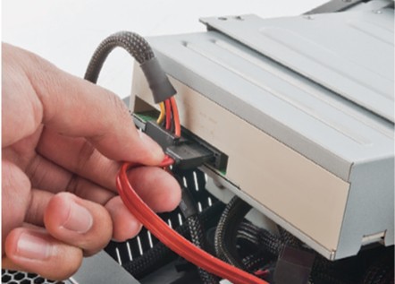 • Съемный отсек для дисков занимает много места. Смонтируйте дисковод для оптических дисков и жесткий диск, подключите кабели и лишь затем устанавливайте отсек в корпус. Кабели являются модульными, впоследствии их можно подключить к блоку питания. Чтобы минимизировать количество переплетенных проводов, задействуйте один кабель с несколькими разъемами SATA.