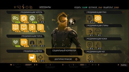 В отличие от FPS-«слагаемого», ролевая часть Human Revolution выглядит просто-таки классической: старая добрая диалоговая система без новомодных фишек вроде «выбора линии разговора» или «значков настроения»; набор очков опыта (XP) по ходу кампании с последующей их тратой на прокачку умений и навыков главного героя. Однако следует отметить, что даже если вам удастся по ходу игры подмести все XP подчистую, для чего нужно очень и очень постараться, полностью открыть «модификации» главного героя не получится, максимум прокачаетесь на 60-70%. Значит, как ни крути, а специализация неизбежна, и чем раньше вы решите, кем будет ваш Адам Дженсен -- сорвиголовой с винтовкой наперевес или хитрым и скрытным диверсантом, тем лучше. Тут уж кому что ближе, выбор как всегда за вами.