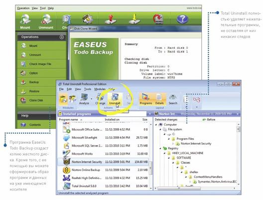 Для решения обеих этих задач стоит воспользоваться программным обеспечением клонирования, которое создаст на пустом внешнем диске точную копию внутреннего жесткого диска. Программа EaseUs Todo Backup (find.pcworld.com/71634) умеет создавать как образы данных, так и полные копии дисков. (Кроме данной, можно использовать программу Acronis TrueImage Home или Paragon Backup & Recovery. Их описание приведено на с. ??? -- Прим. ред.) Лучше сразу делать полную копию, и тогда процесс восстановления данных будет проще. При создании образа не требуется наличия внешнего диска (но вам понадобится большой объем свободного пространства на уже имеющемся диске). И тот и другой вариант сработает.