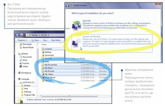 Теперь настало время восстановить ранее сохраненные данные. Если вы использовали официальный дистрибутив Windows 7 или DVD с обновлением, сохраненные данные будут располагаться в папке C:Windows.old. Если же восстановление операционной системы осуществлялось с помощью инструмента, предоставленного производителем компьютера, ваши файлы могут находиться в какой-то специальной папке, например в C:Backup. В противном случае есть вероятность и вовсе не найти их на жестком диске.