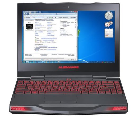 Начинка достаточно мощная: четырехъядерный 2-ГГц (2,9 ГГц в режиме Turbo Boost) процессор Intel Core i7-2630QM, дискретный видеоадаптер nVidia GeForce GTX 460M (1536 Мбайт), 8-Гбайт ОЗУ, два жестких диска, поддержка стереоизображения 3D Vision -- в общем, если это пока еще и не полный аналог настольного компьютера, то уже где-то близко. Причем, что интересно, аппарат практически не нагревается, увеличивая обороты вентилятора лишь при действительно высокой нагрузке.